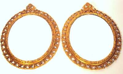 Each oval plate framed by open-carved conforming edge surmounted by foliate crest.