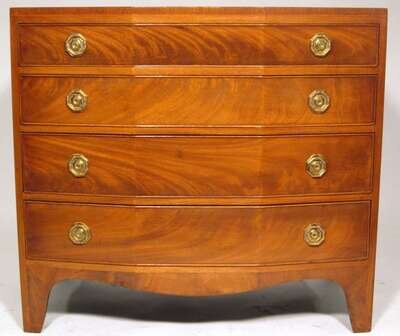 The rectangular top over conforming case of four long drawers raised on bracket feet.