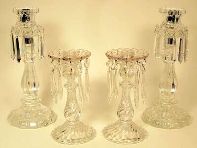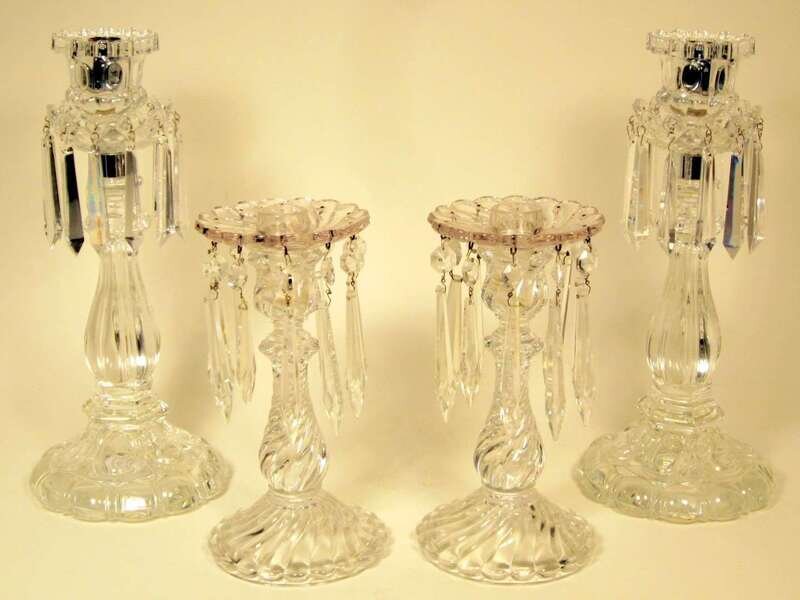 The central tulip form standard supporting free-moving lusters over fluted column. (4).