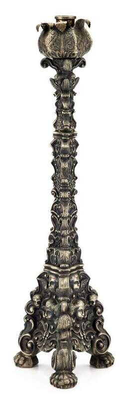 Continental silverplate baroque style candlestick 18/19th century