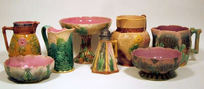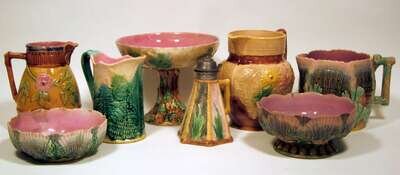Assembled group of eleven English majolica table items mostly late 19th century