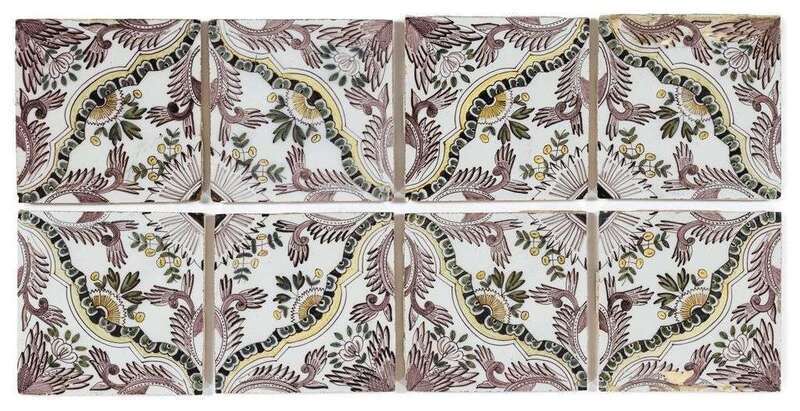 Group of Eight Dutch delft polychrome tiles c. 1780