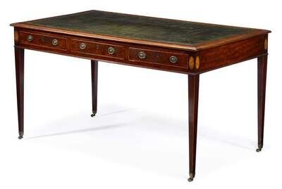 George III mahogany and satinwood library table