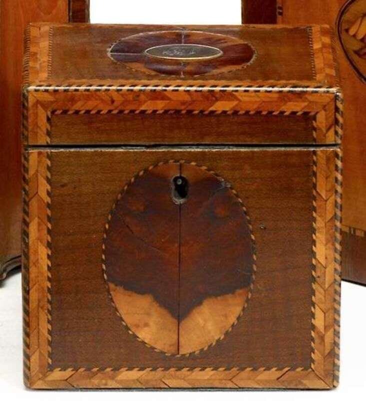 George III parquetry harewood tea caddy