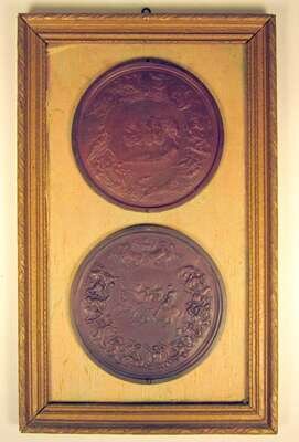 Circular medals of brown bronze patina, electrotype castings commemorating the battle of Waterloo, mounted on later board.
