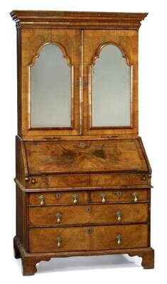 George II walnut secretaire cabinet