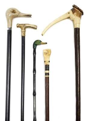 Forty-two Victorian and later walking sticks and canes mostly late 19th century and later