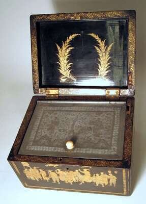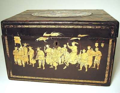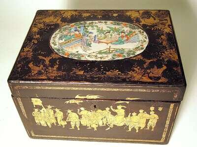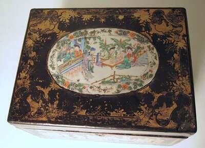 Unusual Chinese gilt lacquer and porcelain insert box
