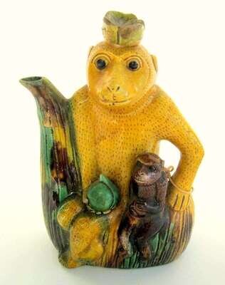 Chinese egg and spinach glaze monkey form ewer possibly kangxi period