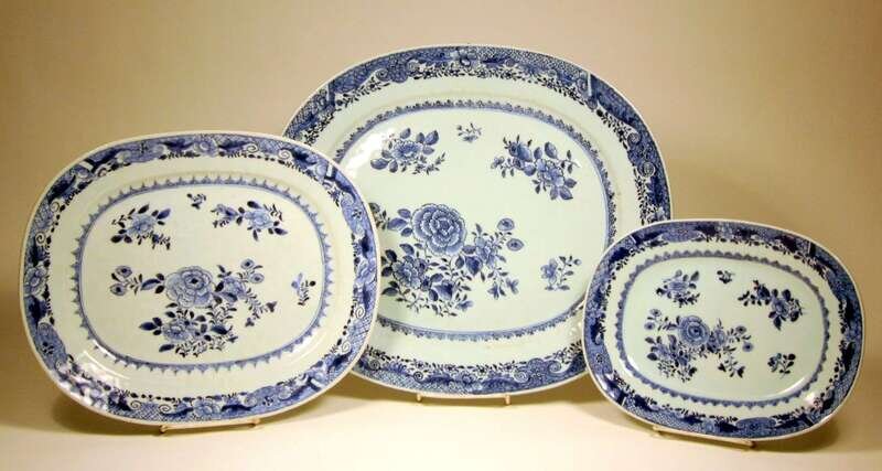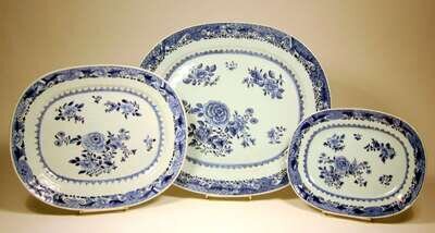 Set of three Chinese export blue and white porcelain graduating meat dishes 19th century