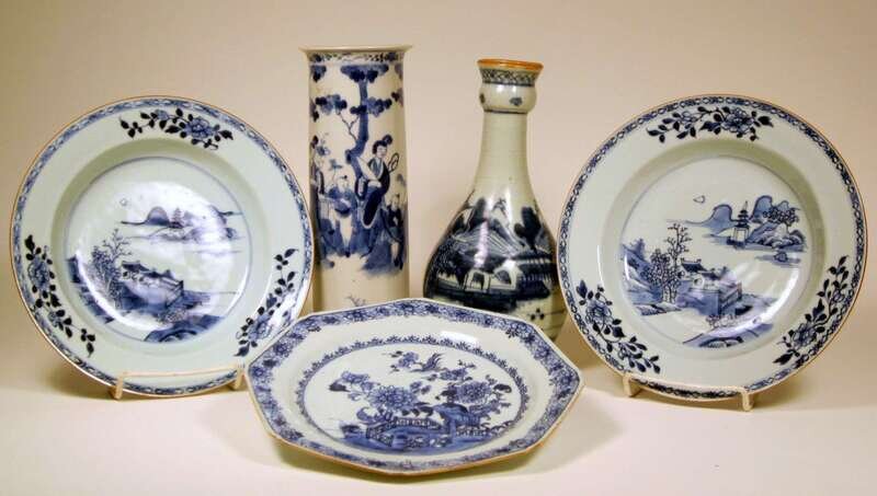 Group of five Chinese export blue and white porcelain items kangxi and later