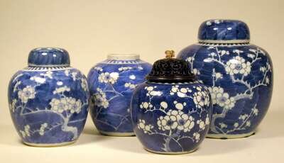 Group of four Chinese export blue and white porcelain jars