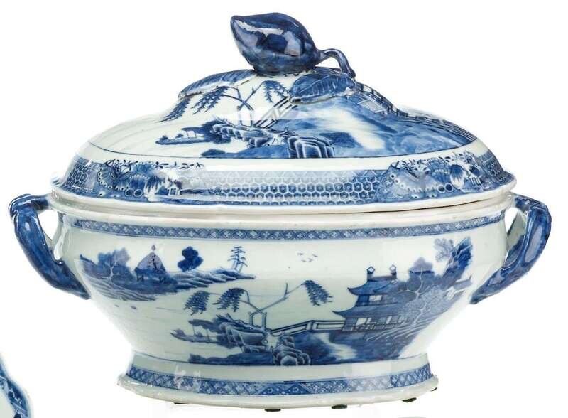 Large Chinese blue and white porcelain tureen and cover qianlong period