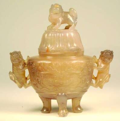Chinese carved agate covered censer 19th century