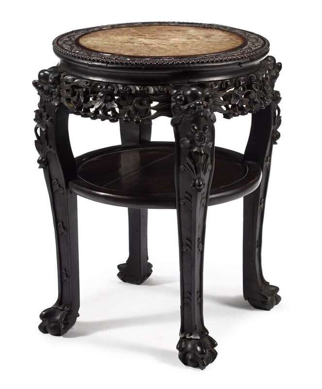 Tall Chinese carved hardwood and marble inset stand late 19th century