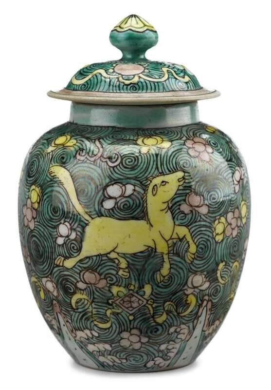 Chinese famille verte porcelain covered jar kangxi period