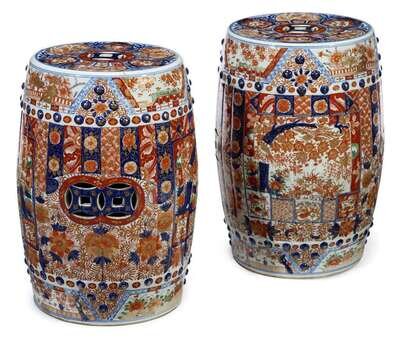 Pair of Chinese export imari palette porcelain garden seats