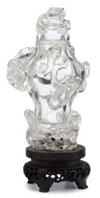 The domed cover carved to show qilong above conforming baluster base showing qilong to handles raised on lingzhi carved base, over wood stand.