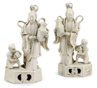 Pair of Chinese blanc de chine figural groupings seal mark verso, late qing dynasty or later