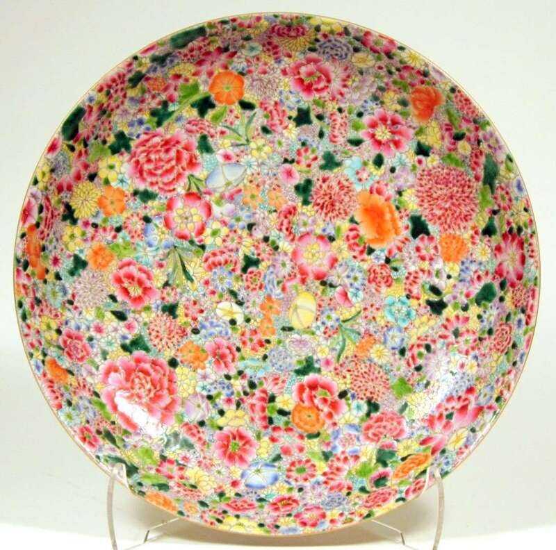 Large Chinese milli flori porcelain charger qianlong mark, 20th century