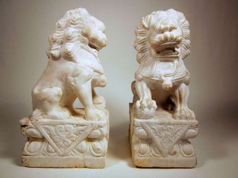 Pair of Chinese white stone Fu-lions late qing dynasty