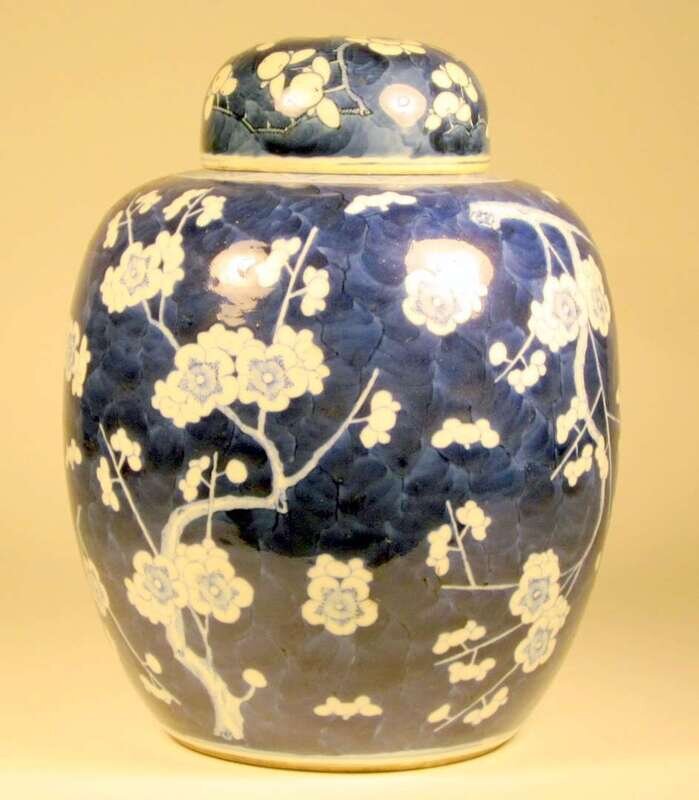 Chinese blue and white porcelain covered jar kangxi mark, late 19th century