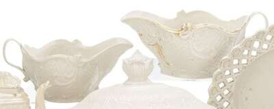 Two English salt-glazed stoneware molded sauceboats 18th century