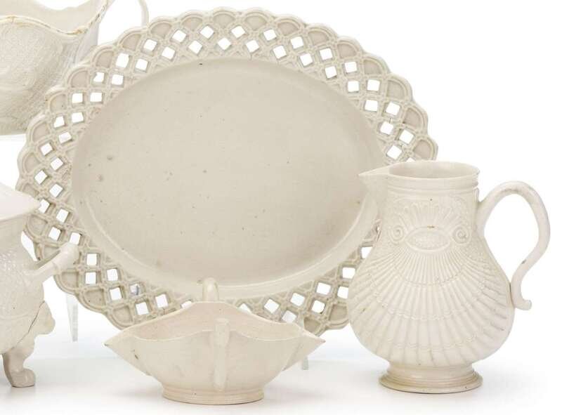 Comprising a molded creamer, lattice worked oval dish, together with a twin handled creamer. (3).