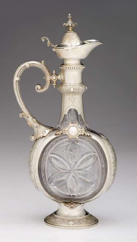 German silver and cut glass claret jug stamped 800