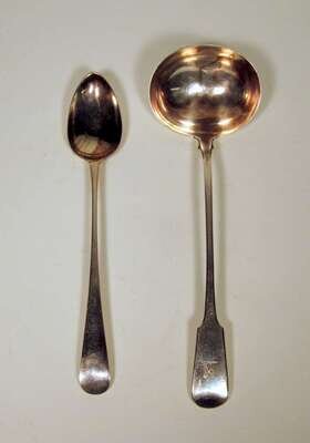 Comprising a ladle, London, 1780, maker's mark RP; and a serving spoon, Peter, Ann and William Bateman, 1801. (2).