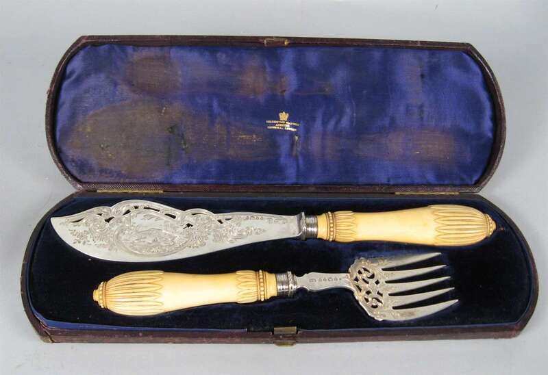 Victorian sterling silver and bone fish serving set henry harrison, sheffield, c. 1870