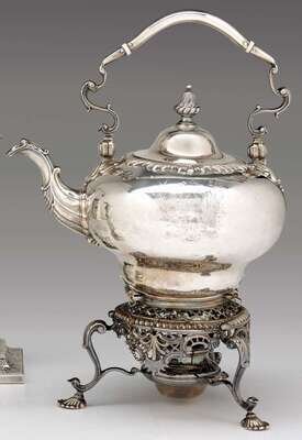 Early Victorian silver kettle on stand with burner benjamin barling, london, 1838