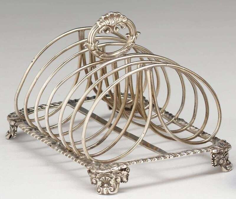 George II silver toast rack london, walter prosser, 1742