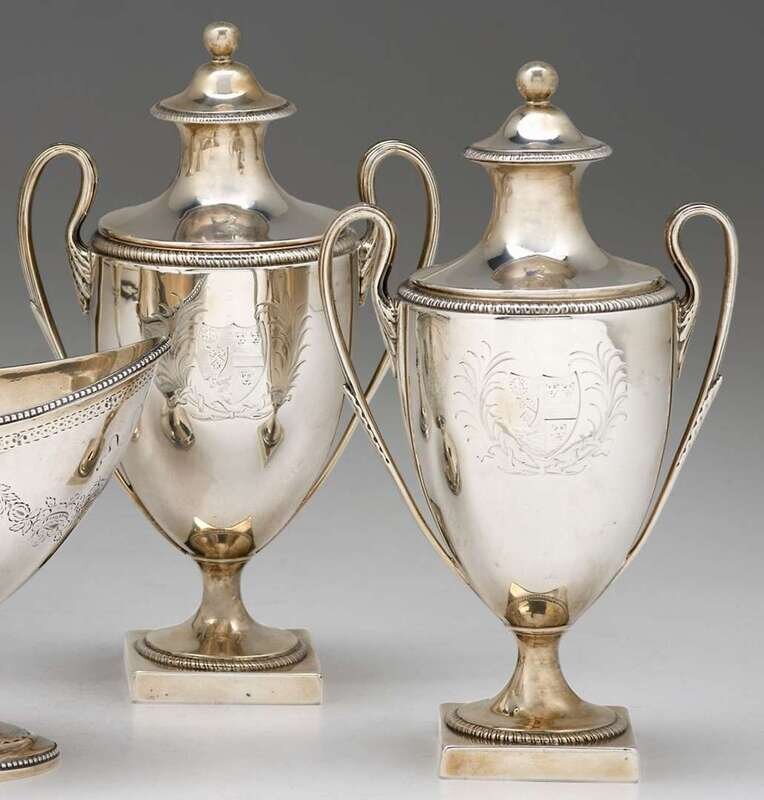 Fine matched pair of George III/George IV silver covered urns london, one digby scott & benjamin smith, 1786, the other richard sibley 1825