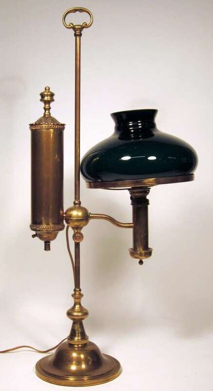Brass and green glass desk lamp early 20th century