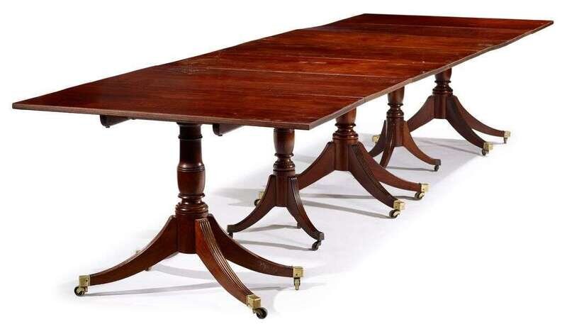 George III style mahogany five pedestal dining table