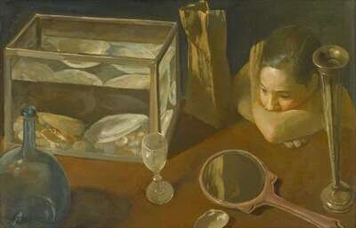 BEN KAMIHIRA (AMERICAN 1925-2004) "GIRL AND FISH TANK"