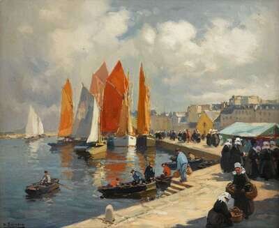 HENRI ALPHONSE BARNOIN (FRENCH 1882-1940) A BUSY HARBOR SCENE