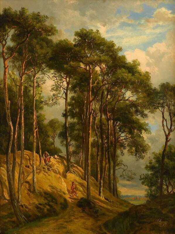 DAVID JOHNSON (AMERICAN 1827-1908) FIGURES IN A WOODLAND