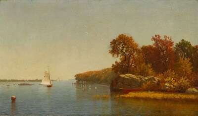 AMERICAN SCHOOL (19TH CENTURY) SAILBOATS IN AN AUTUMN LANDSCAPE