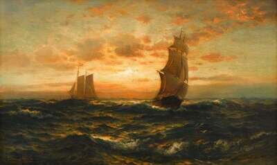 EDWARD MORAN (AMERICAN 1829-1901) "SQUARE RIGGER AT SEA"