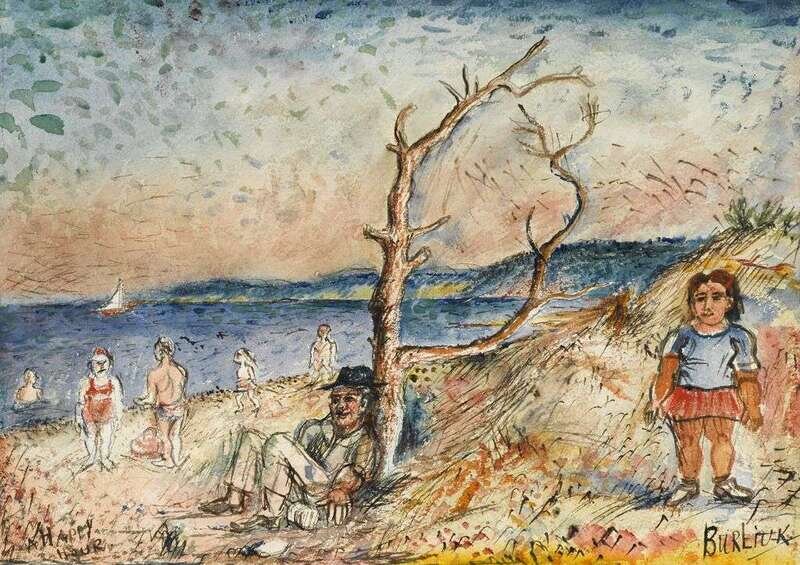 DAVID DAVIDOVICH BURLIUK (AMERICAN/RUSSIAN 1882-1967) "A HAPPY HOUR"