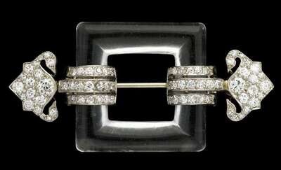 Platinum, rock crystal and diamond jabot pin, Cartier art deco