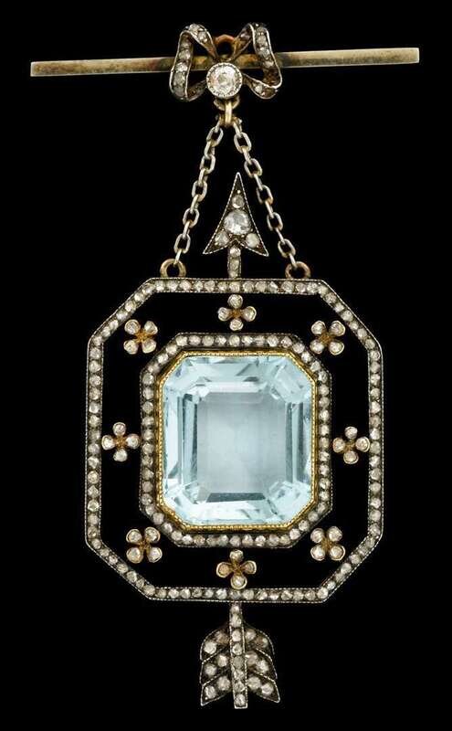 Silver topped yellow gold, aquamarine and diamond brooch russian, ca. 1900