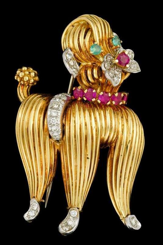 18 karat yellow gold, diamond, ruby and emerald 'poodle' brooch, Tiffany & Co.
