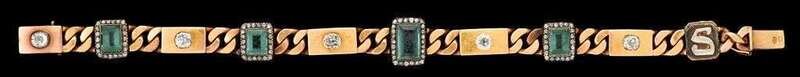 14 karat yellow gold, tourmaline and diamond bracelet russian, ca. 1900