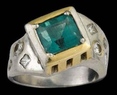 Platinum, yellow gold and emerald ring contemporary