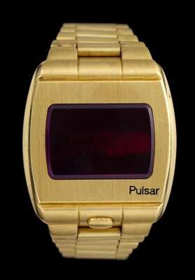 Gentleman's 18 karat yellow gold digital wristwatch, Pulsar ca. 1970