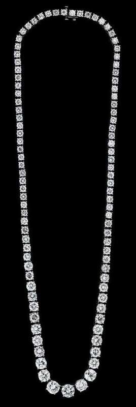 Graduated diamond necklace, approximately .90 carat center stone graduating down to .10 carat, total diamond weight approximately 20 carats.