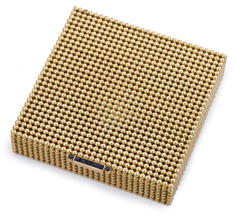 14 karat yellow gold and sapphire compact, Tiffany & Co. 1940s